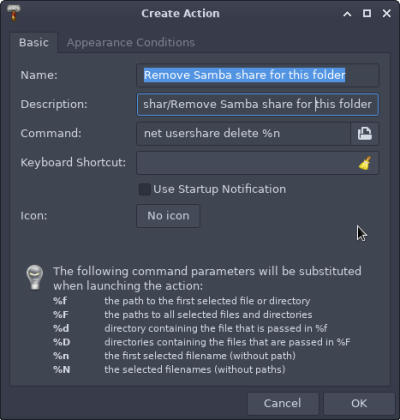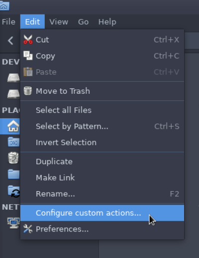 اما برای XFCE چنین گزینه ای در دسترس نیست. اما برای برطرف کردن این مسئله ، باید یک «custom action» ایجاد کنید.