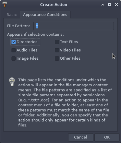در زبانه « appearance condition» فقط Directory را انتخاب کنید.